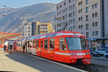 Nous sommes arrivés à l'autre extrémité de la ligne. La gare Suisse de Martigny est le point nodal entre les CFF, la ligne Martigny/Orsières des TMR et le Mont-Blanc Express.