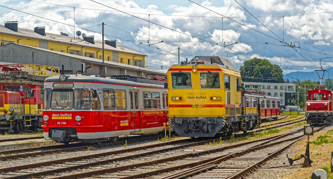 Mais il y a surtout l'ET 24.101, une automotrice de 3e classe à deux essieux de 1932 construite par Grazer Waggonfabrik réservée aux circulations d'amateurs "Nostalgiefahrzeug" !